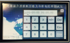 四、在圖5界面中,可以分別對試驗參數(shù)進行設(shè)置,圖中是設(shè)備的默認參數(shù),如需改動,只要點擊需要改動的參數(shù),就會自動彈出一個小鍵盤,如下圖,在小鍵盤中直接輸入需要的參數(shù)并點擊小鍵盤上的確認鍵即可,選擇打印的時候只要點擊光標處就可以在是和否之間切換。設(shè)定好后點擊確定即可回到主界面,空杯檢測完畢沒有問題后,將油杯的內(nèi)電極取出置于油杯架上,取40ml待測油樣置于油杯中(注意:注入油樣時一定注意不能出現(xiàn)氣泡,應(yīng)沿著杯壁緩緩注入),油樣注入后,再將油杯的內(nèi)電極慢慢的放到位。(動作要慢一些,防止動作太快,排氣不及時,使油樣溢出),接好測量信號線和溫度信號線,點擊圖3中的自動測試,一般測油是都按照規(guī)程90℃測量,同樣也可以選擇立即測試,在當前溫度下測量。